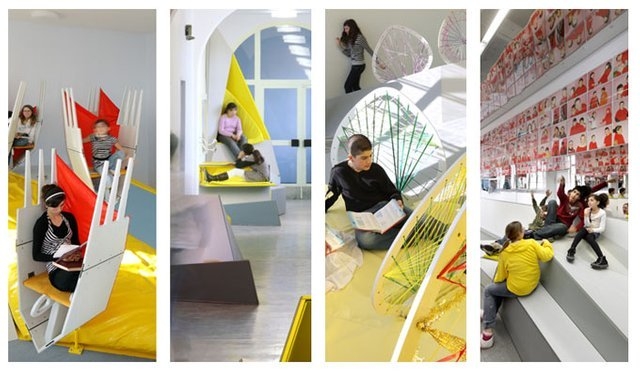 Школу оновила група студентів Берлінського інституту архітектури. Так, їх надихнула тема драконів, тому вони шкільні коридори та зали перетворили на футуристичний простір творчості, відпочинку та відкриттів.