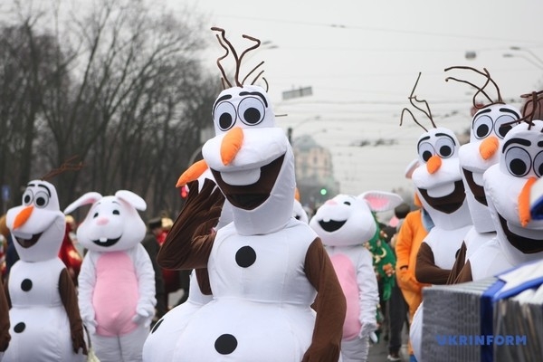 У Києві в неділю, 22 грудня, відбувся перший новорічний парад, участь в якому взяли близько сотні костюмованих персонажів.