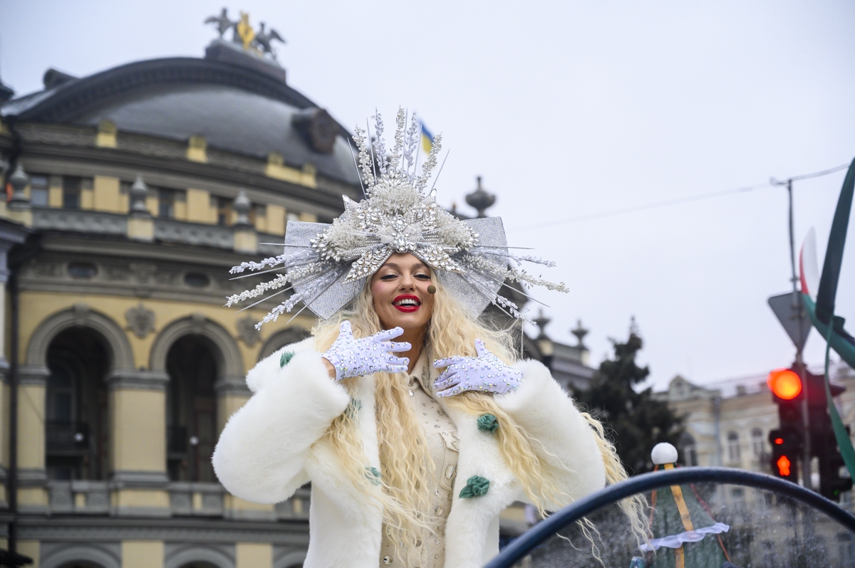 Від парку Шевченка до Софійської площі вирушили понад 500 костюмованих персонажів: ельфи, жонглери, акробати на ходулях, а також оркестри та святкова 10-метрова платформа з головною Сніговою королевою - Олею Поляковою.