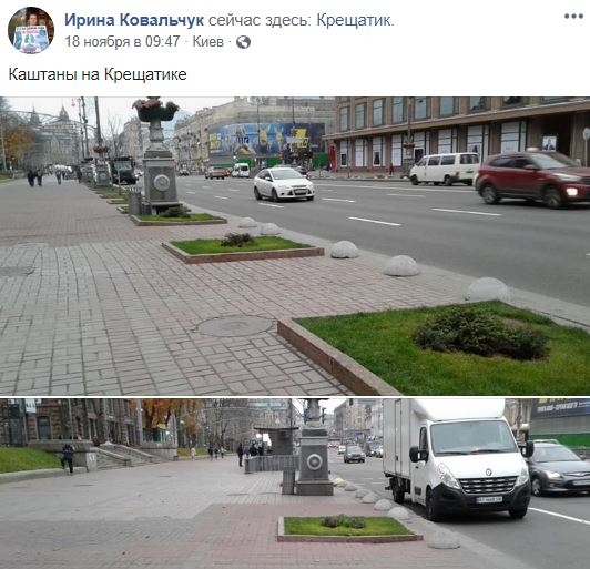 Подія набула розголосу після публікації киянки Ірини Ковальчук, яка помітила, що з Хрещатика забрали каштани.
