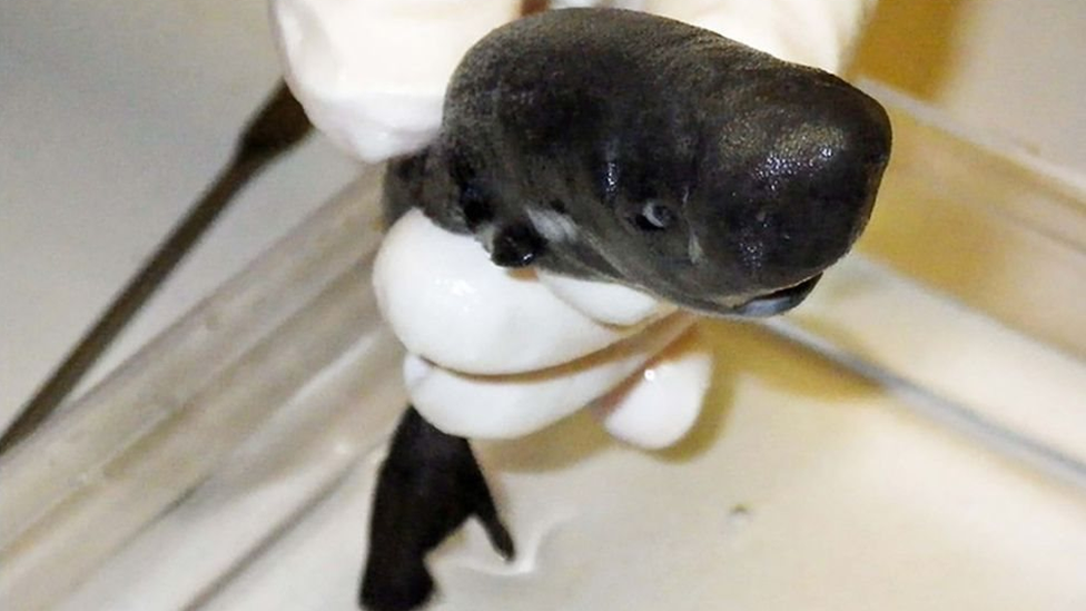 Ця невелика рибка - лише 14 см у довжину - трохи схожа на кашалота, але насправді це так звана кишенькова акула. Її виловили в Мексиканській затоці ще в 2010 році, але тільки через дев'ять років офіційно визнали новим видом.