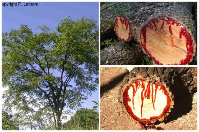Дерево отримало свою назву через смоли яскраво-червоного кольору, яка починає сочитися при найменшому надрізі.