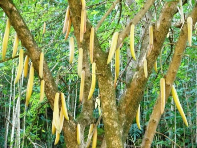 Вічнозелене дерево, що володіє кауліфлорією – формуванням плодів безпосередньо на стовбурі та основних гілках.