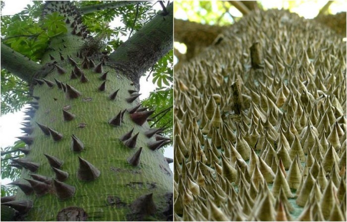 Стовбур і гілки дерева покриті дуже великими колючими шипами.