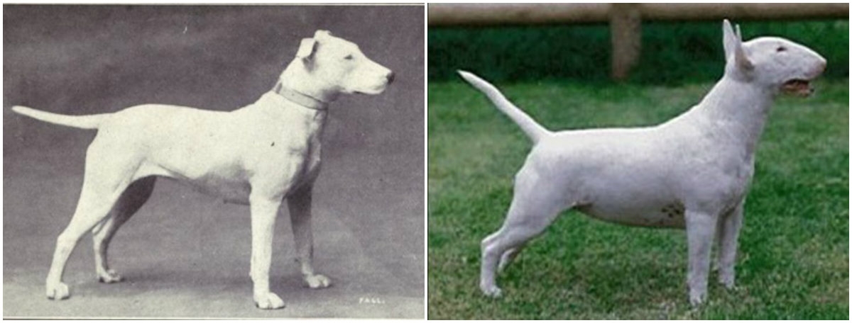 У результаті експерименту до початку XX століття заводчики створили тварину, яку ви бачите на чорно-білій фотографії - цілком собі симпатична собака. Але останні сто років внесли свої корективи, і тепер бультер'єри виглядають переконливо й навіть загрозливо.